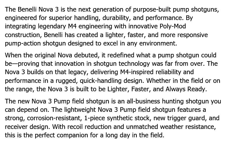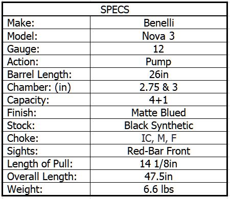 BENELLI NOVA 3 12ga 3in SYNTHETIC 26in 4rnd