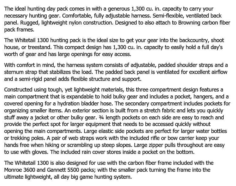 BROWNING WHITETAIL 1300 MAJOR BROWN HUNTING PACK