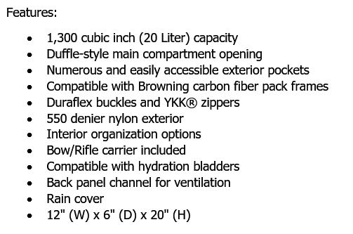 BROWNING WHITETAIL 1900 MAJOR BROWN HUNTING PACK