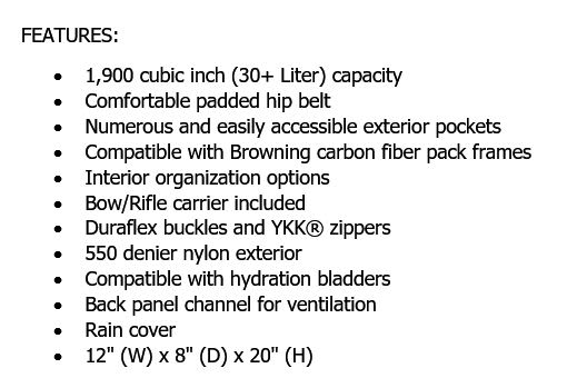 BROWNING WHITETAIL 1900 MAJOR BROWN HUNTING PACK quantity