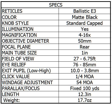 BURRIS FULLFIELD 4-16X50mm ILLUMINATED BALLISTIC E3 SCOPE