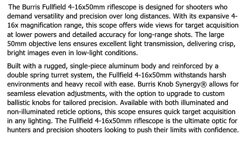 BURRIS FULLFIELD 4-16X50mm ILLUMINATED PLEX SCOPE