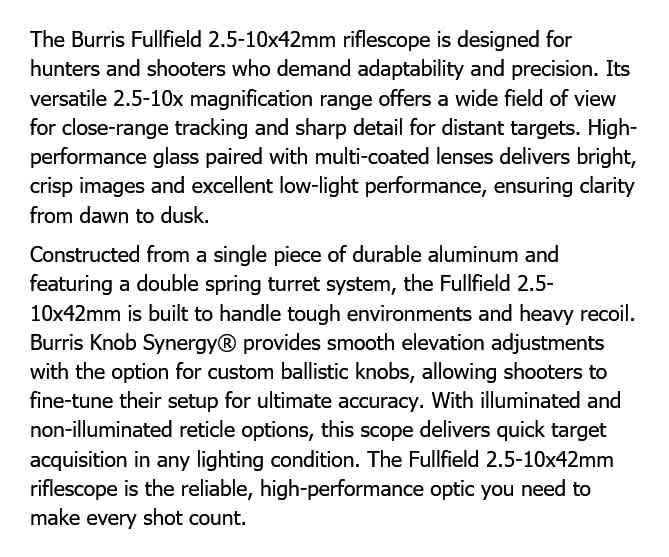 BURRIS FULLFIELD IV 2.5-10x42mm PLEX KSB RIFLESCOPE