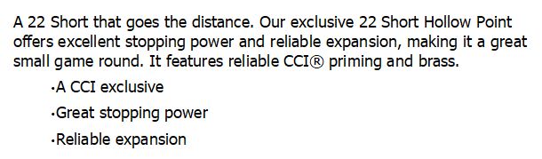 CCI 22 SHORT 27gr HP 1105fps 100pk quantity