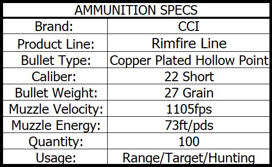 CCI 22 SHORT 27gr HP 1105fps 100pk
