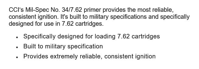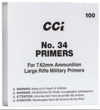 CCI No. 34 PRIMERS FOR 7.62 100pk quantity