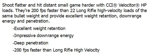 CCI VELOCITOR 22LR 40gr CPHP 1435fps 50pk