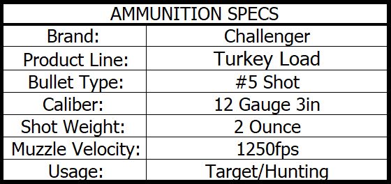 CHALLENGER 12ga #5 3in 2oz TURKEY LOAD 1250fps 10pk