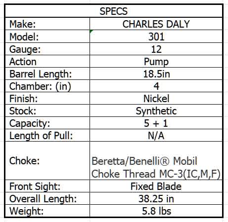 CHARLES DALY 301 12ga 3inTACTICAL NICKEL 18.5in 4rnd