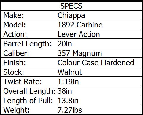 CHIAPPA 1892 CARBINE 357 MAG COLOUR CASE HARDENED 20in 8rnd