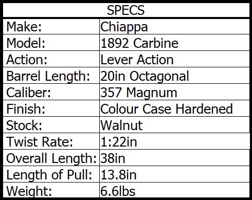 CHIAPPA 1892 RIFLE 357 MAG COLOUR CASE HARDENED 20in 10rnd