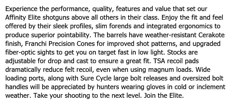 FRANCHI AFFINITY ELITE 12ga 3.5 TIMBER/COBALT 28in 4rnd quantity