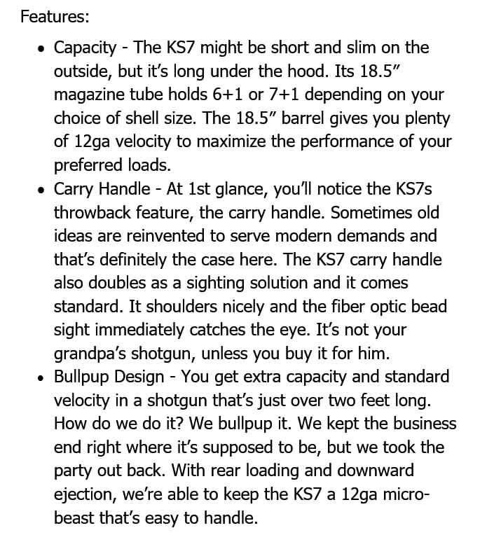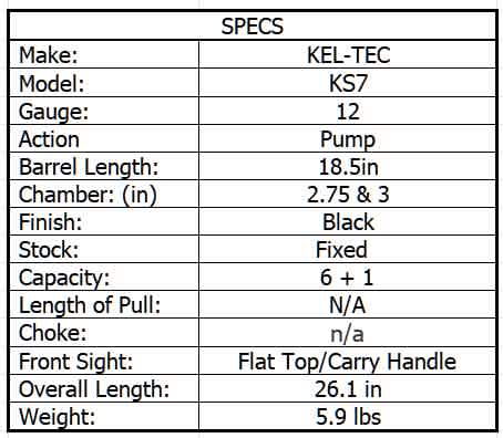 KEL-TEC KS7 12ga 2.75 & 3in 18.5in 6rnd
