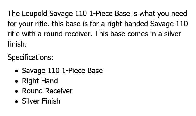 LEUPOLD STD SAVAGE 110 RH 1pc – SILVER