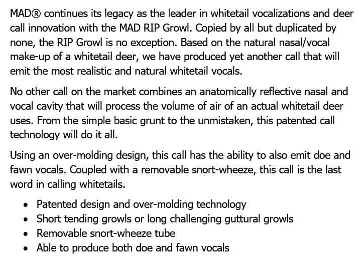 MAD HYPER GROWL DEER CALL W/LANYARD