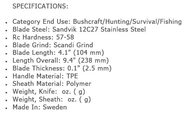 MORA COMFORT SPARK 4.5in FIXED BLADE W/SPARKER