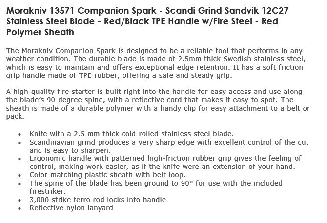 MORA COMFORT SPARK 4.5in FIXED BLADE W/SPARKER quantity