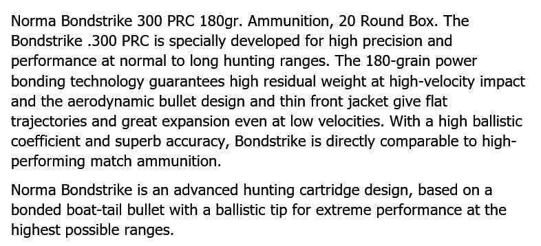 NORMA BONDSTRIKE 300 PRC 180gr 3117fps 20pk