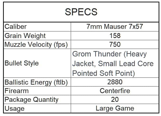 PPU GROM LINE 7MM MAUSER 7x57 158gr SP 750fps 20pk quantity