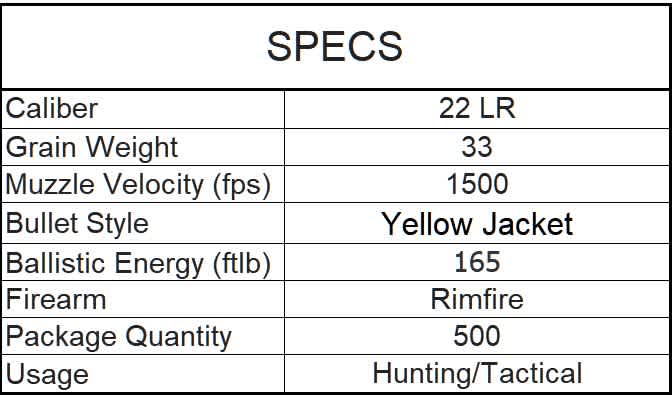 REMINGTON YELLOW JACKET 22LR 33gr HP 500pk 1500fps