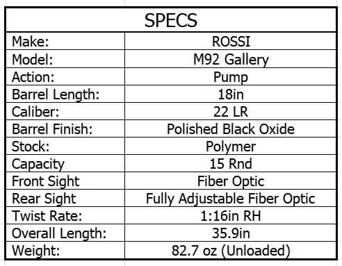 ROSSI M92 PUMP 22LR BLUE 18in 15rnd quantity