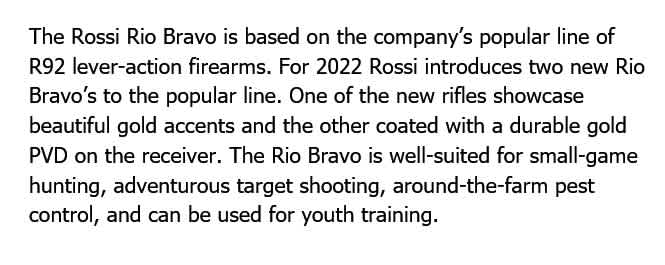 ROSSI M92 RIO BRAVO 22LR GOLD CERAKOTE 18in 15rnd