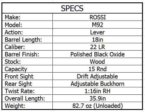 ROSSI M92 PUMP 22LR WOOD 18in 15rnd