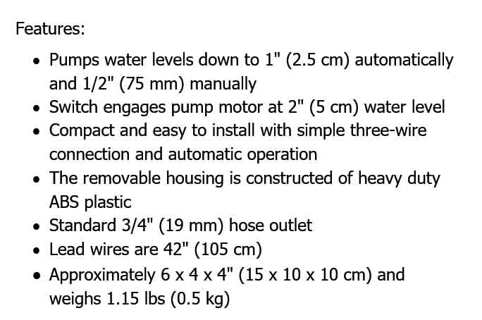 SHORELINE MARINE 800gph AUTO BILGE PUMP