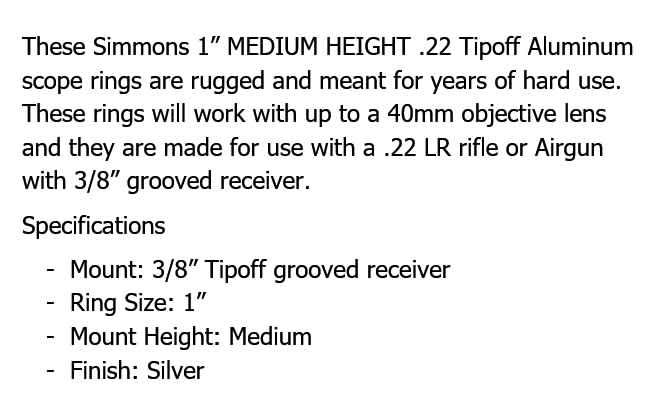 SIMMONS 22LR 1in MED RINGS – SILVER