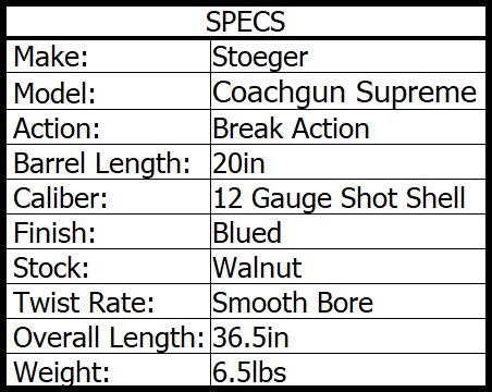 Tags: 12-gauge, 12ga, blued, blued-barrel, break-action, breakaction, centerfire, coachgun, double, double-barrel, double-or-single-barrel, no-international-shipping, shotgun, stoeger, wood, wood-blued