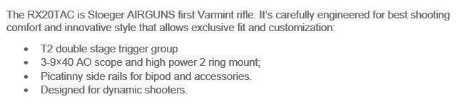 STOEGER RX20TAC 1000fps SYNTHETIC .22 CAL COMBO
