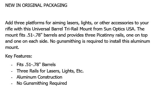 SUN OPTICS TRI-RAIL BARREL ADAPTER/RIFLES quantity