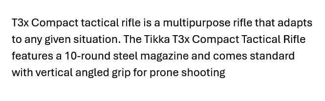 TIKKA T3x CTR 6.5 PRC MT W/ PICA RAIL 24in 5rnd