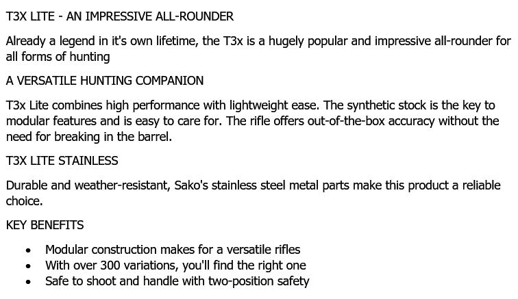 TIKKA T3X LITE 308 WIN SS/SYN 22.4in 3rnd quantity