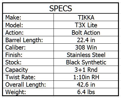 TIKKA T3X LITE 308 WIN SS/SYN 22.4in 3rnd