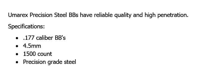 UMAREX .177 PRECISION STEEL BB 1500ct BOTTLE quantity
