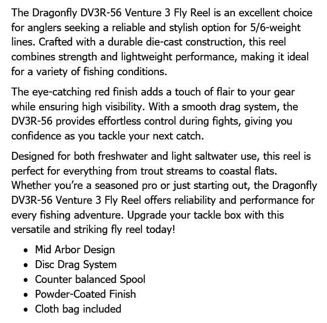 DRAGONFLY VENTURE 3 5/6wt RED FLY REEL