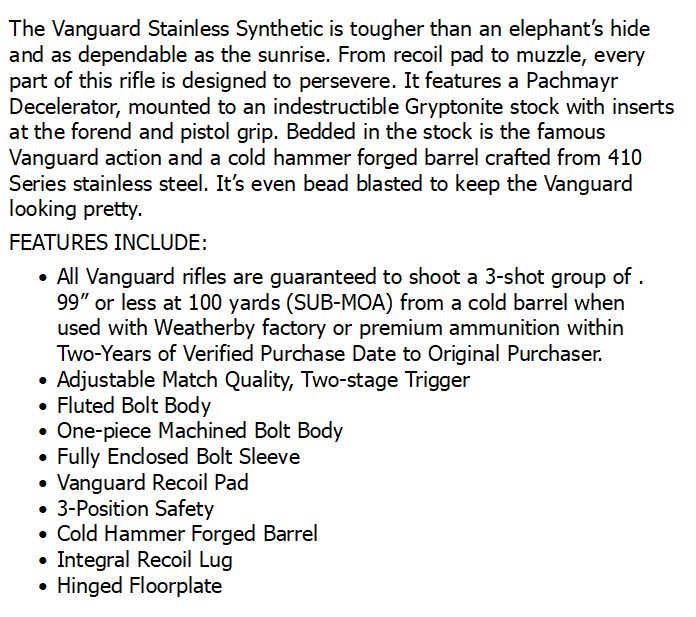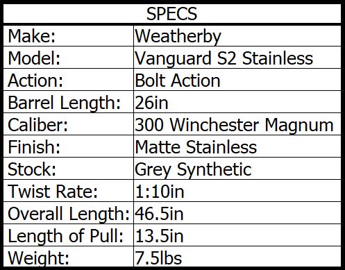 WEATHERBY VANGUARD S2 STAINLESS 300 WIN MAG 26in 3rnd