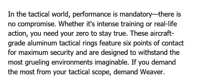 WEAVER RINGS 6-HOLE TACTICAL 1in EXTRA HIGH RINGS – MATTE