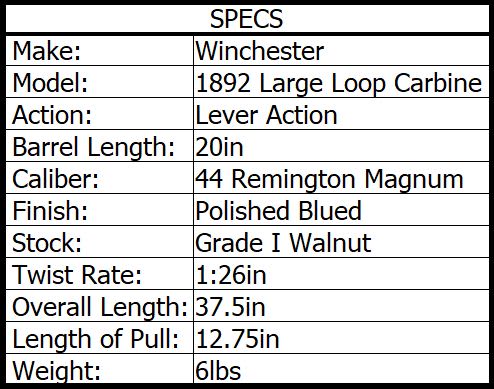 WINCHESTER 1892 LARGE LOOP CARBINE 44 REM MAG 20in 10rnd