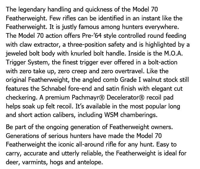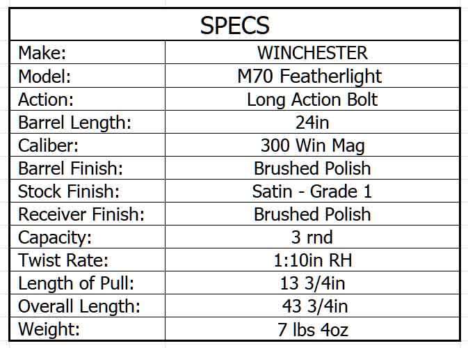 WINCHESTER M70 300 WIN MAG FEATHERWEIGHT 24in 3rnd