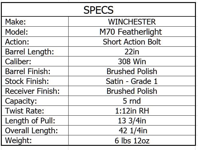 WINCHESTER M70 308 WIN FEATHERWEIGHT 22in 5rnd