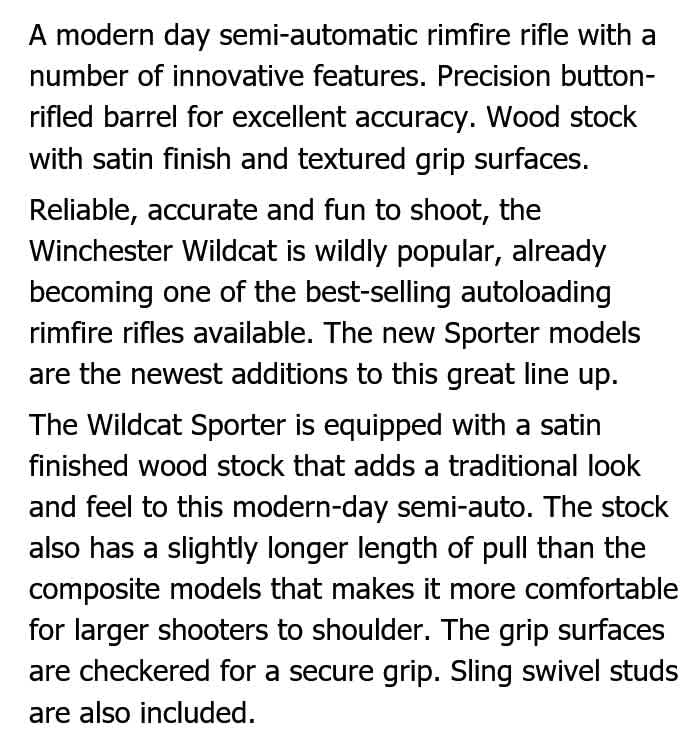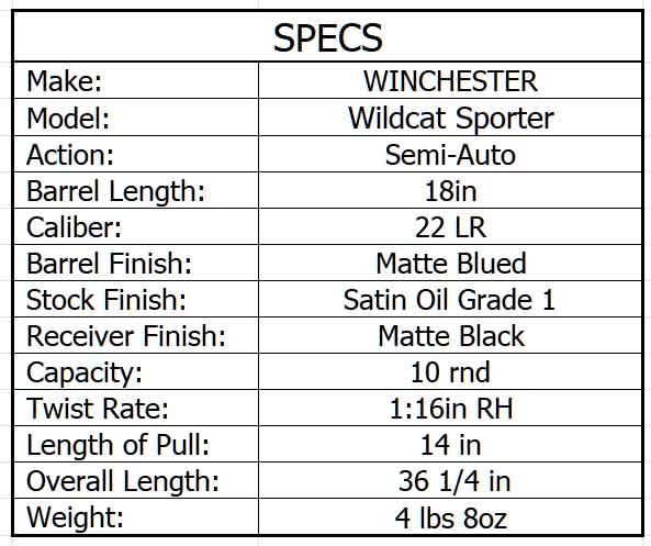 WINCHESTER WILDCAT SPORTER WOOD 22LR 18in 10rnd